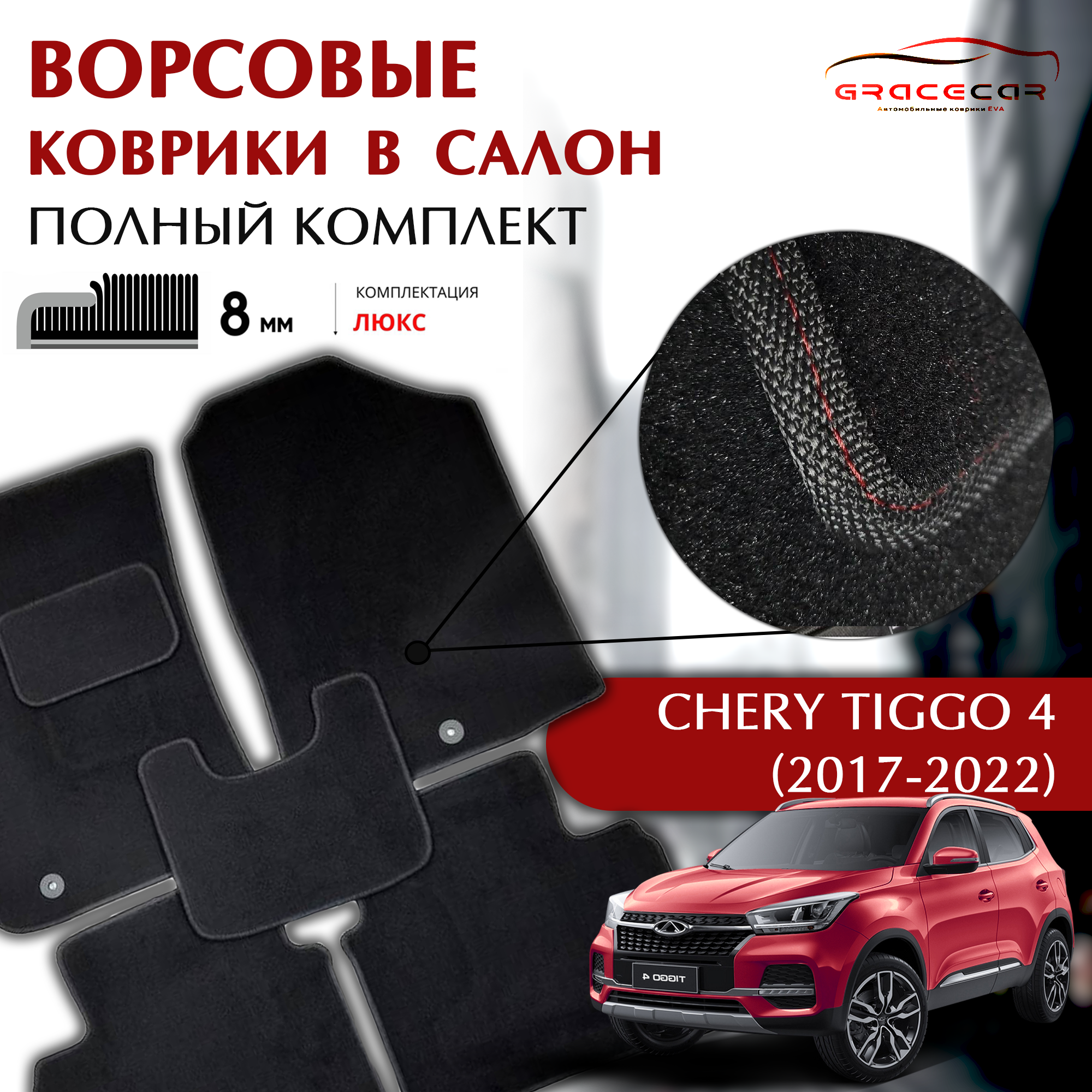 10 цен на Ворсовые коврики для Chery Tiggo 4 (2017-2022) / Чери Тигго 4 (2017-2022) черный ворс/ черный кант