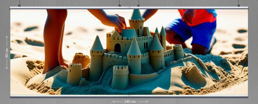 10 цен на Картина на холсте "Дети, строящие песчаный замок" с подвесами 240х90 см. для интерьера на стену