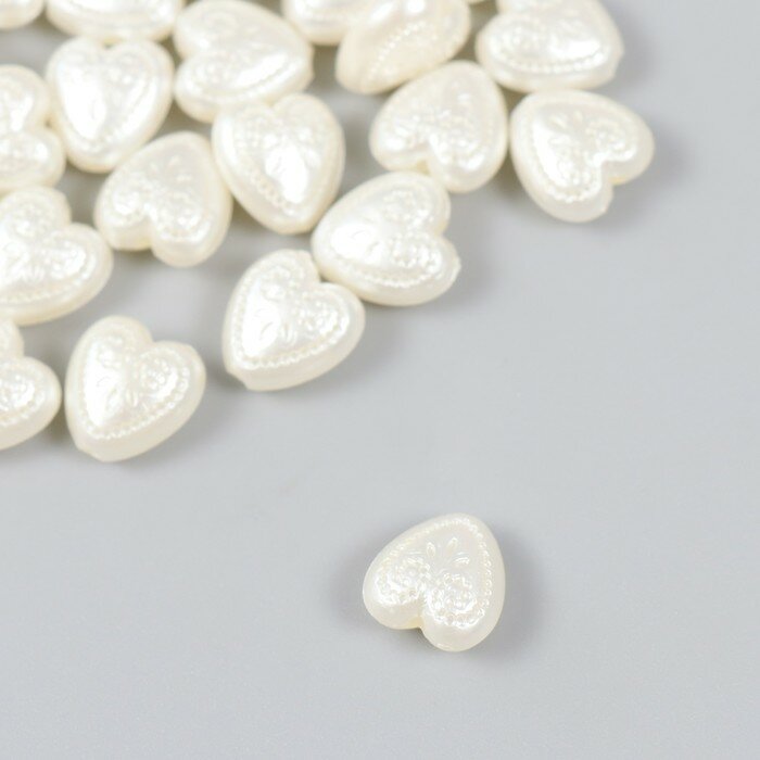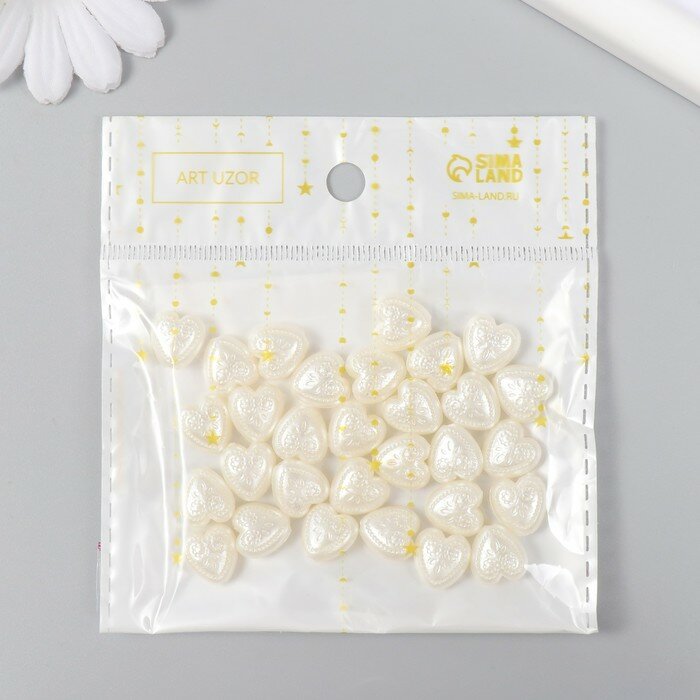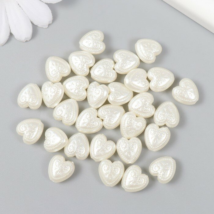 10 цен на Бусины для творчества пластик "Жемчужные сердца с узорами" набор 30 шт 0,5х1,1х1,2 см