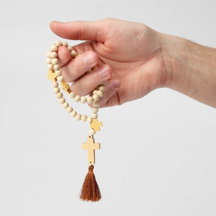 10 цен на Чётки деревянные «Православные» 50 бусин через крестик, цвет молочный