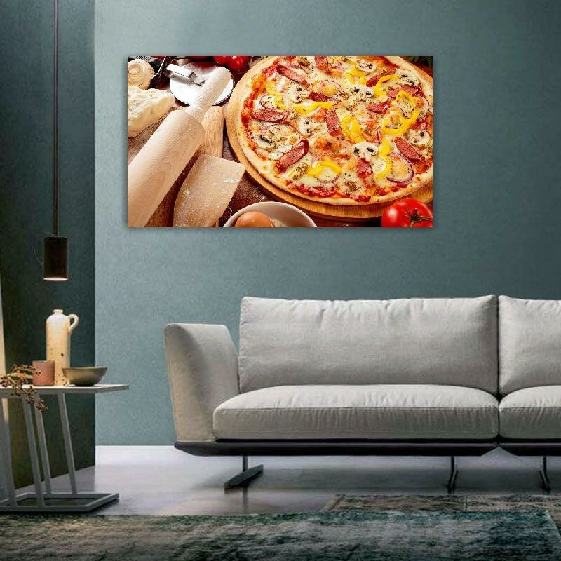 Картина на холсте 60x110 Альянс Лес "Помидоры Грибы пицца овощи сыр" на подрамнике / интерьер/ декор информация: