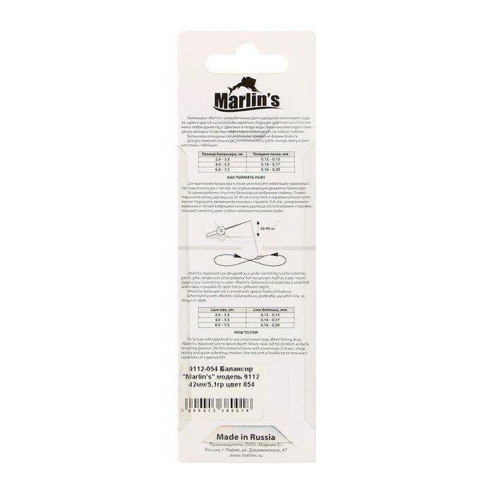 Marlin's Балансир Marlin's 9112, 4.2 см, 5.1 г, цвет 054 информация: