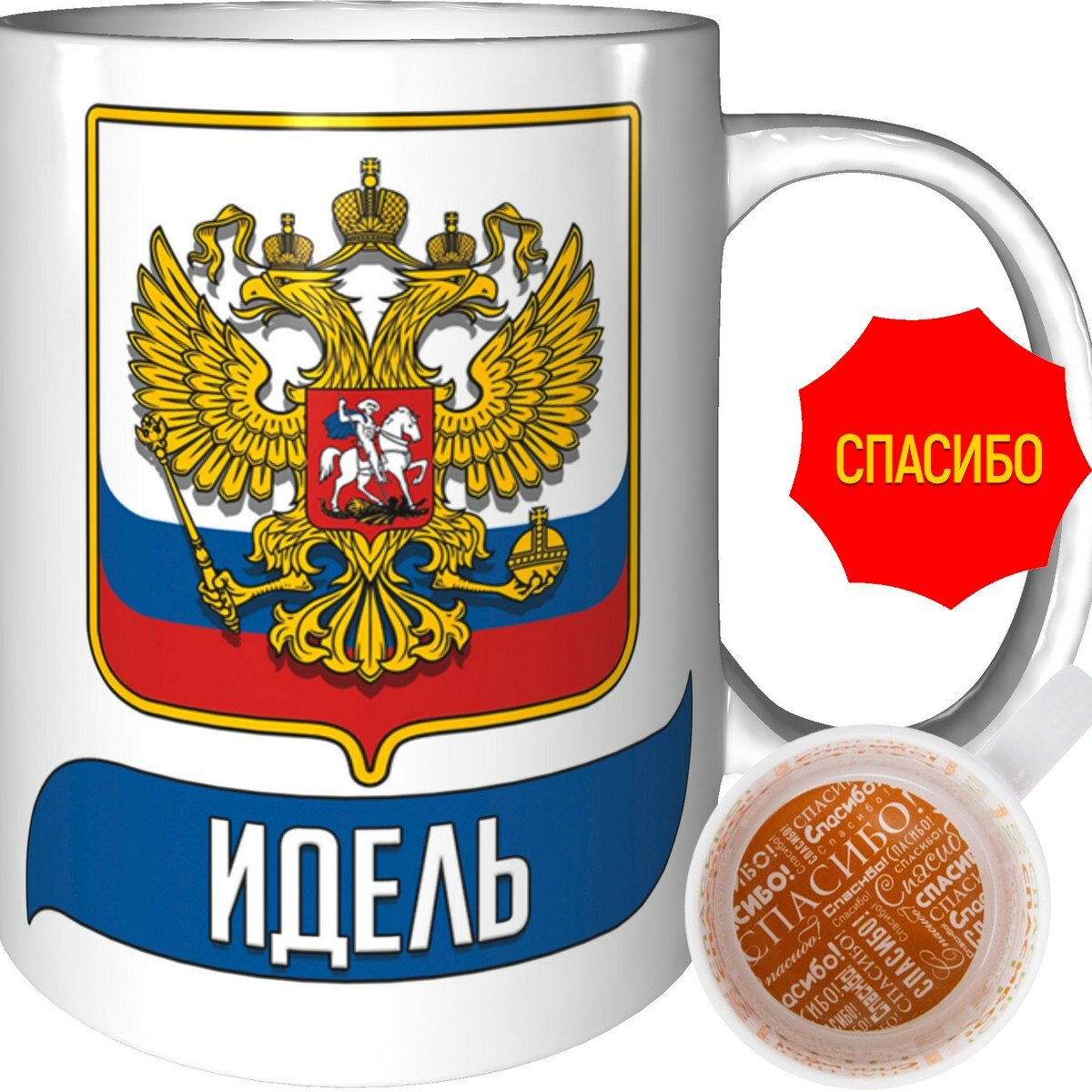 Кружка Идель с Флагом и Гербом России - внутри спасибо информация: