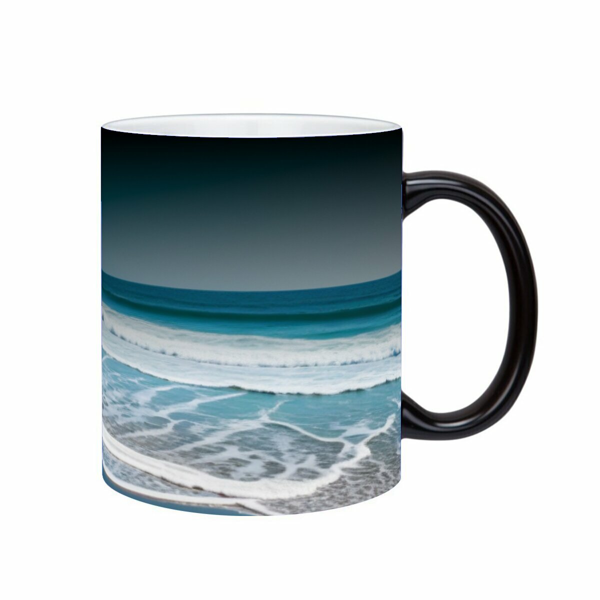 10 цен на Кружка хамелеон с принтом "Небольшое соревнование на пляже" 330 мл.