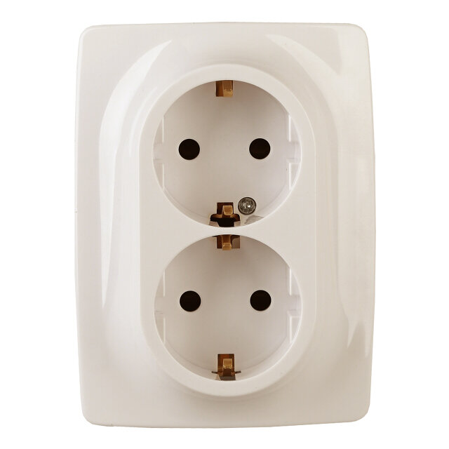 10 цен на розетка 2 поста ЭРА, серия 12 с заземлением, слоновая кость