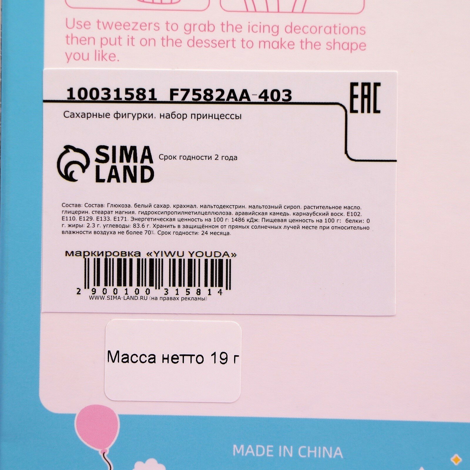10 цен на Сахарные фигурки "Набор принцессы" 1шт.