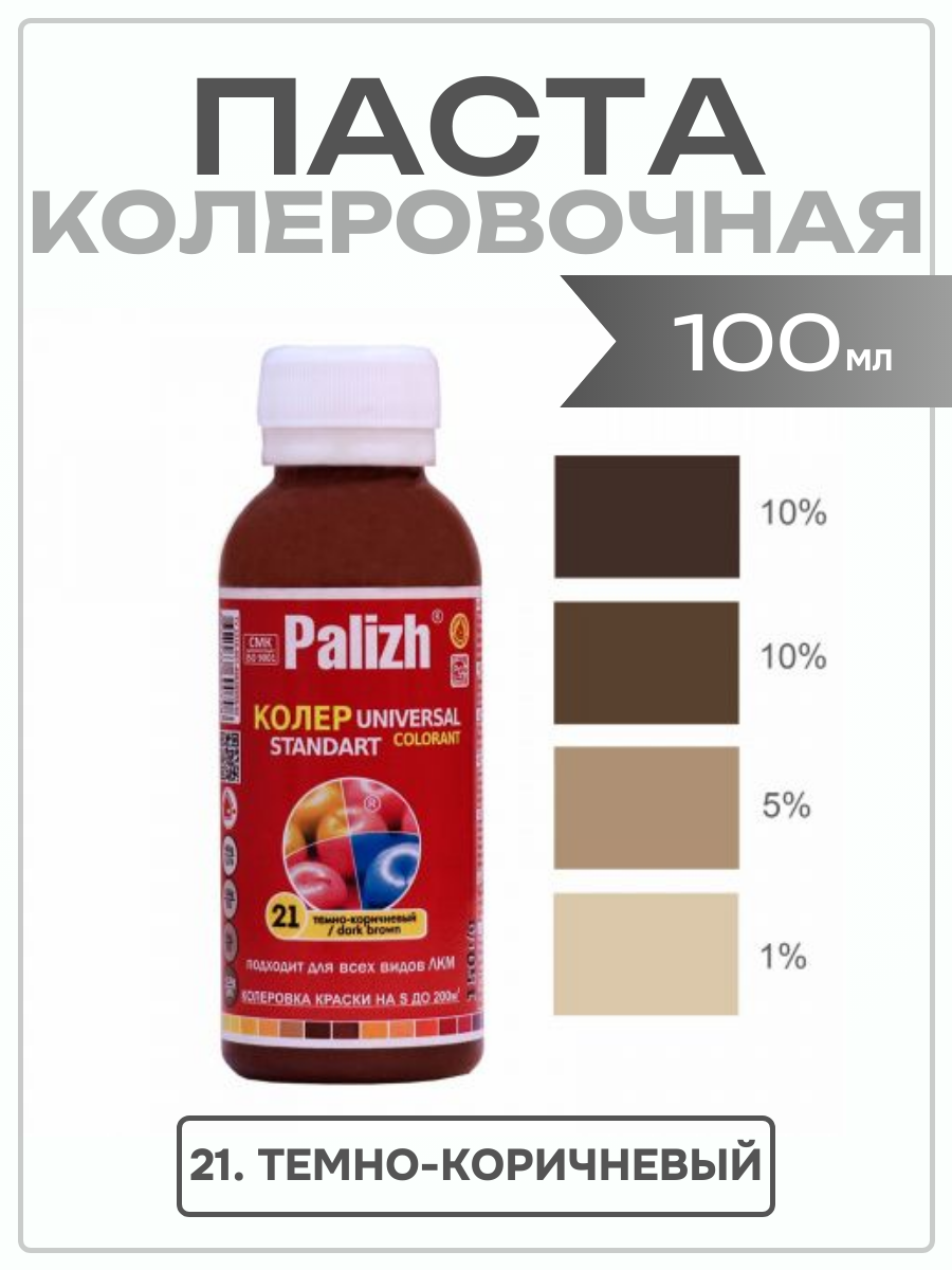10 цен на Паста колер универ. "Palizh STANDART" 0,1л №21 темно-коричневый