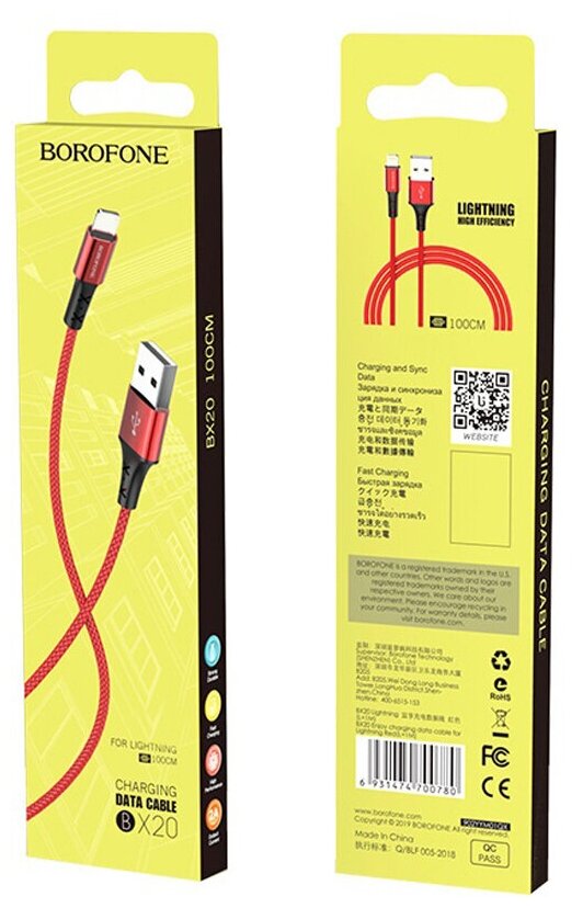 Кабель Borofone с разъемом Lightning для iphone, 1 метр, красный информация: