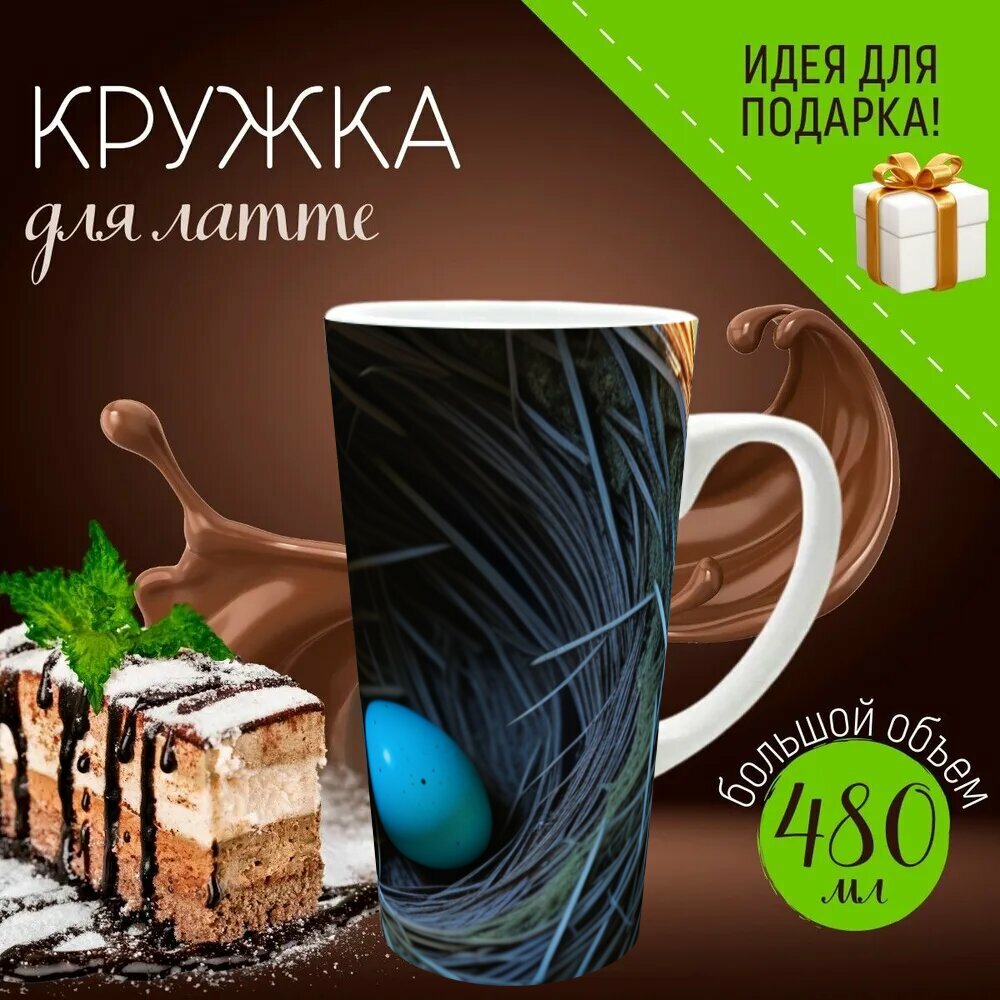 10 цен на Кружка латте керамическая большая для чая и кофе с прикольным принтом "Птицы в гнезде на фоне утреннего света" 500 мл.