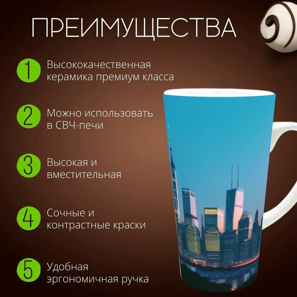 10 цен на Кружка латте керамическая большая для чая и кофе с прикольным принтом "Подъемный кран на фоне городской панорамы" 500 мл.