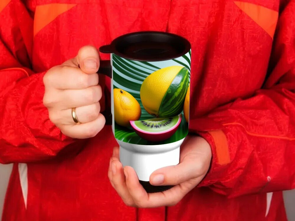 Отзывы на Тремокружка для авто с принтом "Тропические фрукты с листьями пальмы" 0.5 л.