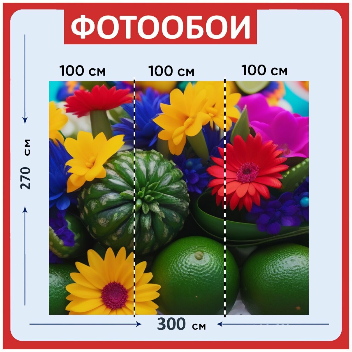 Фотообои "Фрукты и цветы на мексиканском празднике" 300x270 см. флизелиновые на стену информация: