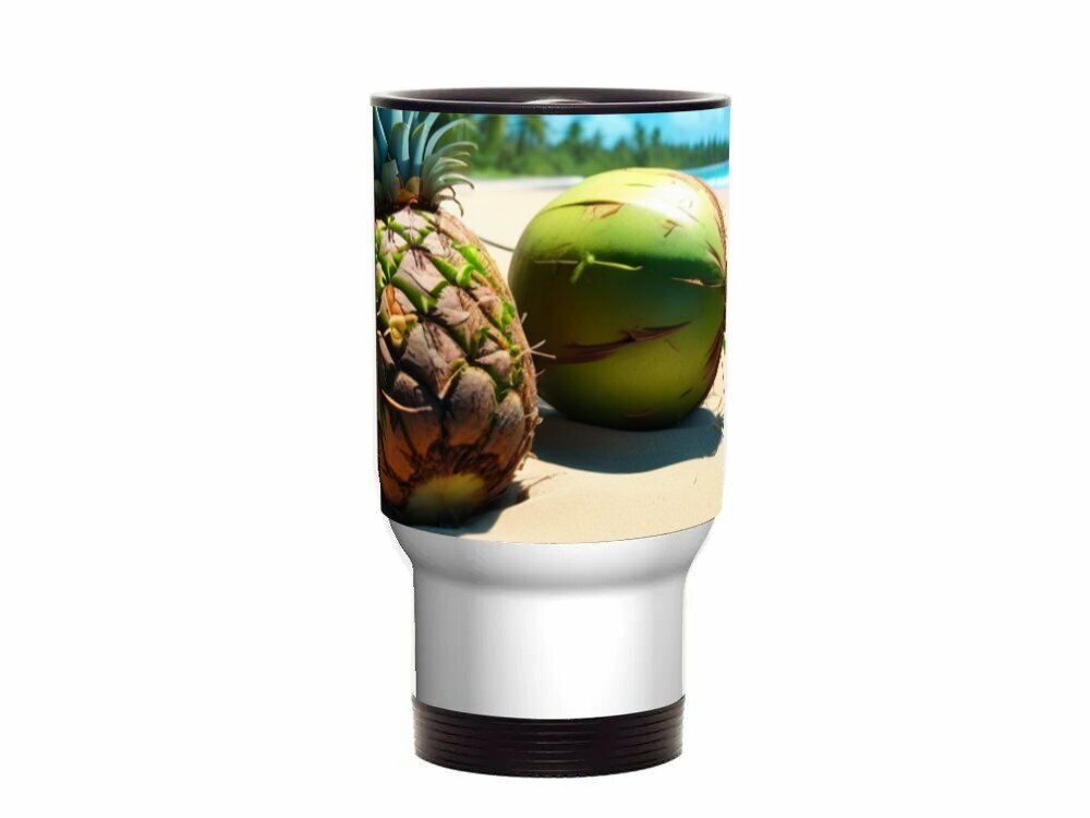Тремокружка для авто с принтом "Ананасы и кокосы на пляже" 0.5 л. информация:
