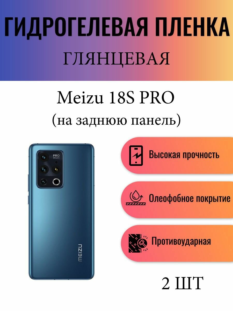 Комплект 2 шт. Глянцевая гидрогелевая защитная пленка на телефон Meizu 18s Pro / Гидрогелевая пленка для мейзу 18с про (на заднюю панель) информация: