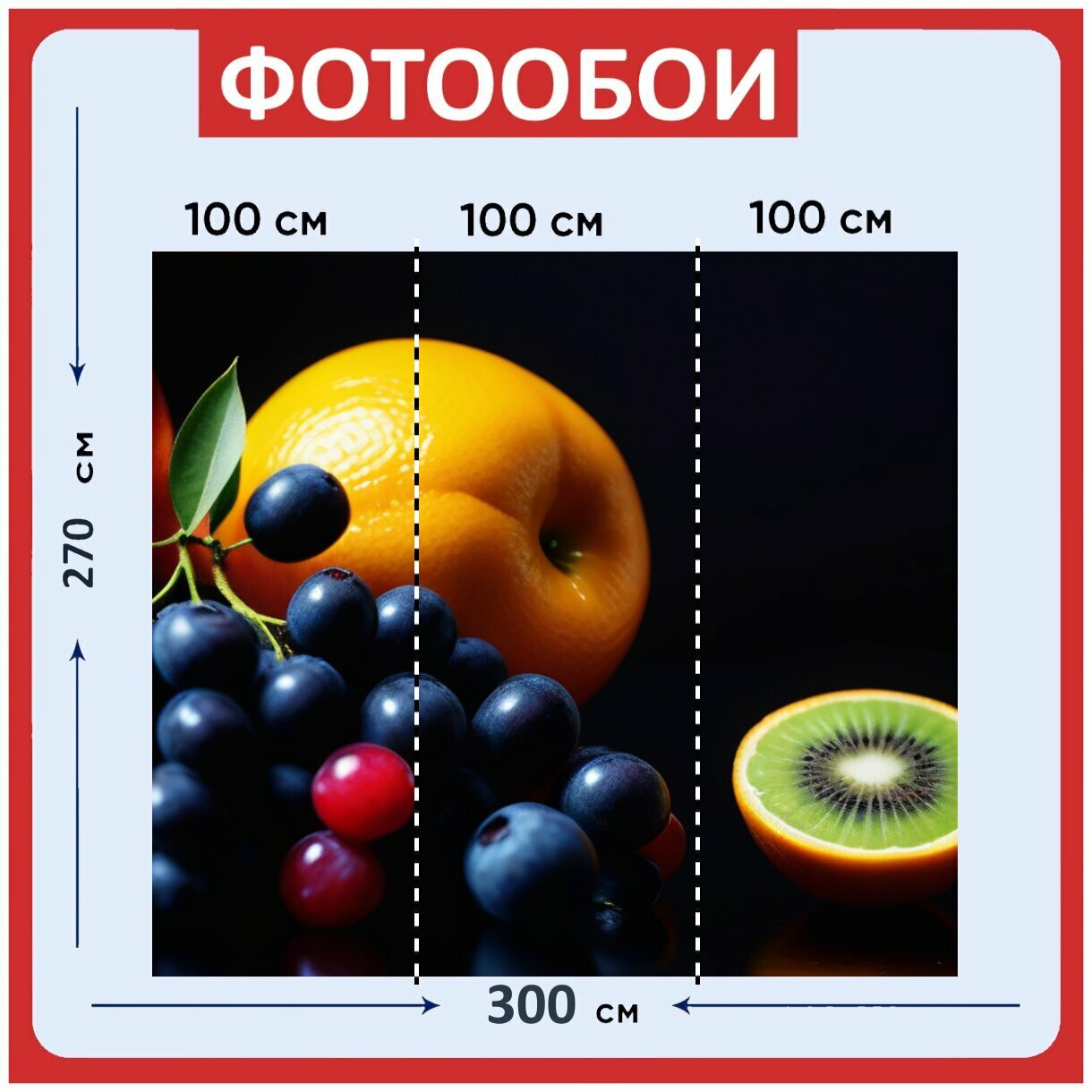 Фотообои "Темный фон и светлые фрукты" 300x270 см. флизелиновые на стену информация: