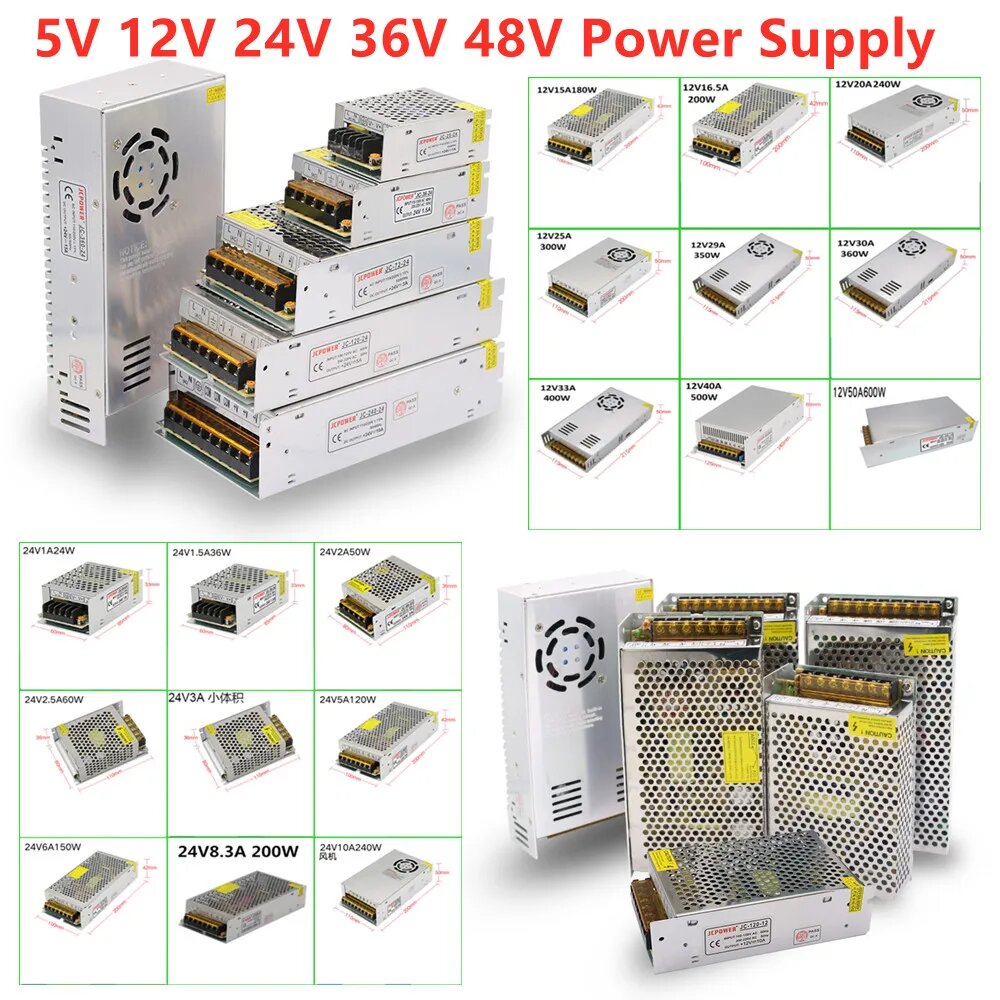 Отзывы на Импульсный источник питания, AC-DC-адаптер 110 В 220 В переменного тока в 5 В, 12 В, 24 В, 36 В, 48 В, 1 А, 5 А, 20 А, 30 А, 40 А, 60 А, 2A, 12 В