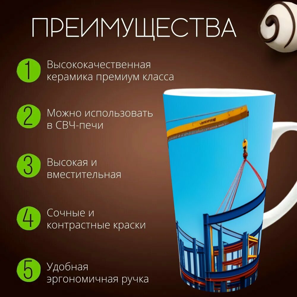 Кружка латте керамическая большая для чая и кофе с прикольным принтом "Кран, поднимающий элементы для модульного строительства" 500 мл. информация: