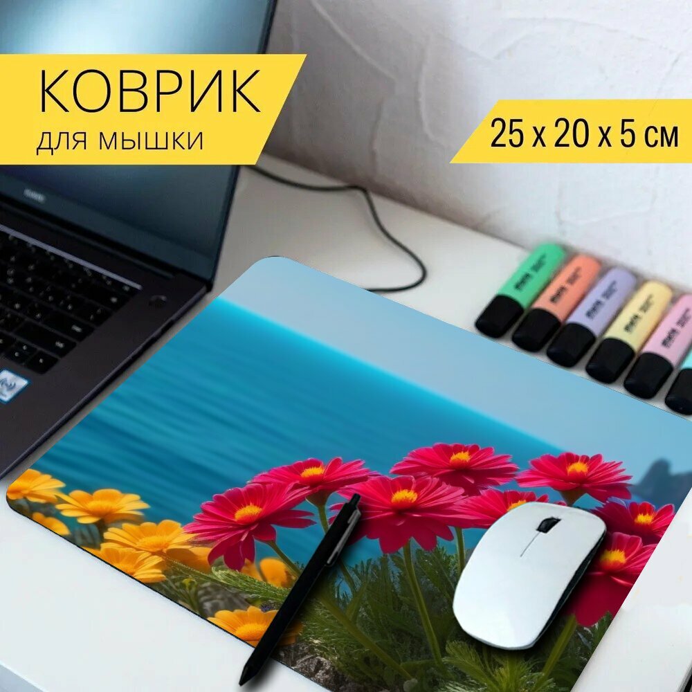 Коврик для мыши с принтом "Прекрасные цветы на фоне океана" 25x20см. информация: