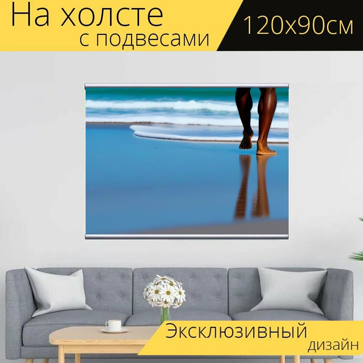 10 цен на Картина на холсте "Прогулка по пляжу" с подвесами 120х90 см. для интерьера на стену
