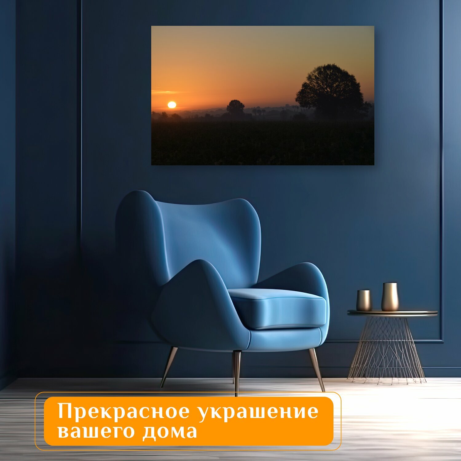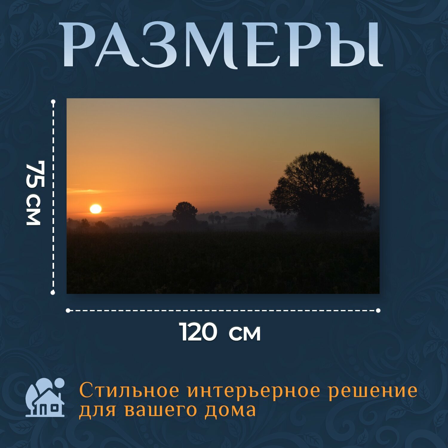 Отзывы на Картина на холсте "Поле, восход солнца, силуэт" на подрамнике 120х75 см. для интерьера
