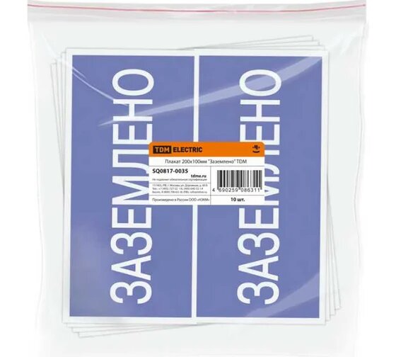 TDM Плакат 200x100мм "Заземлено" SQ0817-0035 информация: