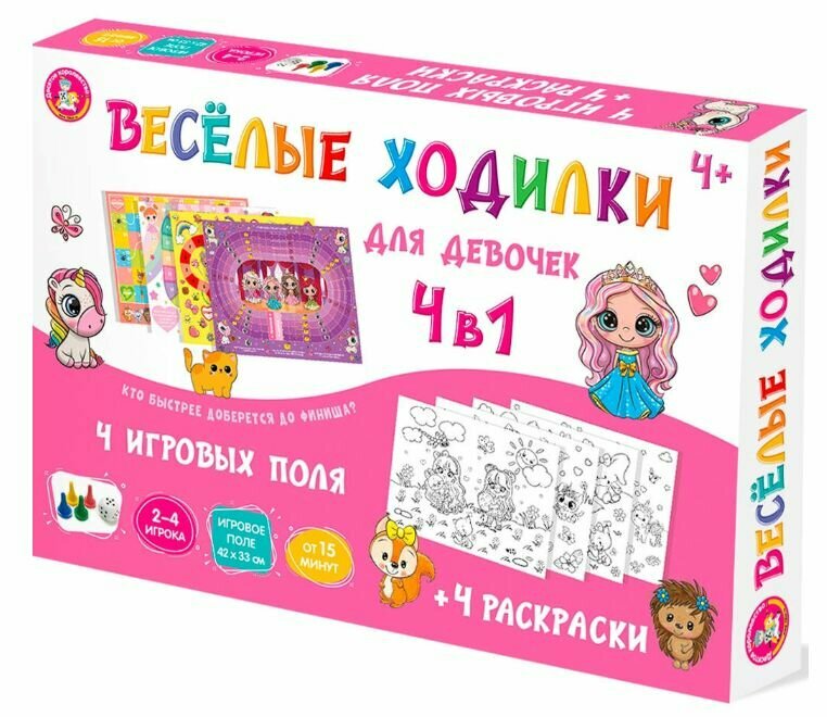 Настольная игра Игра настольная ходилкаВеселые ходилки 4в1для девочек информация: