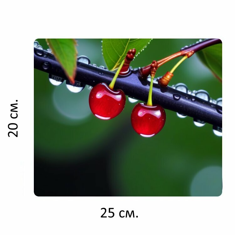 Коврик для мыши с принтом "Веточка черешни с каплями росы" 25x20см. информация: