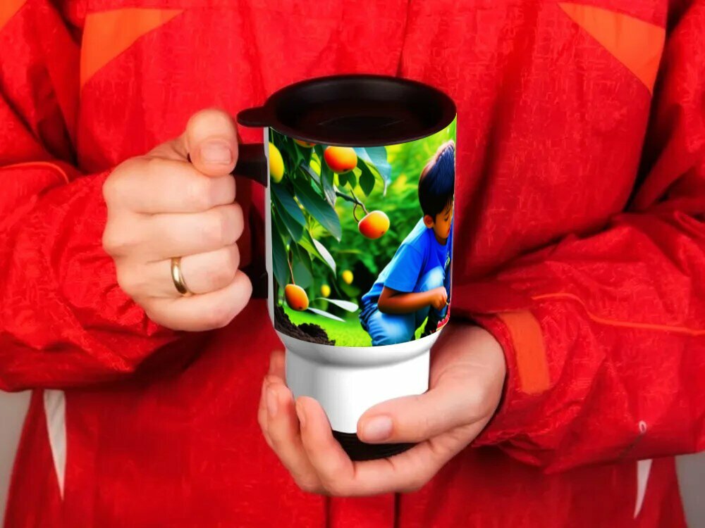 Тремокружка для авто с принтом "Дети собирают фрукты в саду" 0.5 л. информация:
