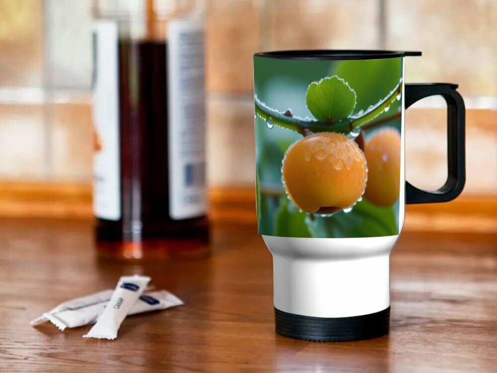 10 цен на Тремокружка для авто с принтом "Абрикосы, покрытые росой ранним утром" 0.5 л.
