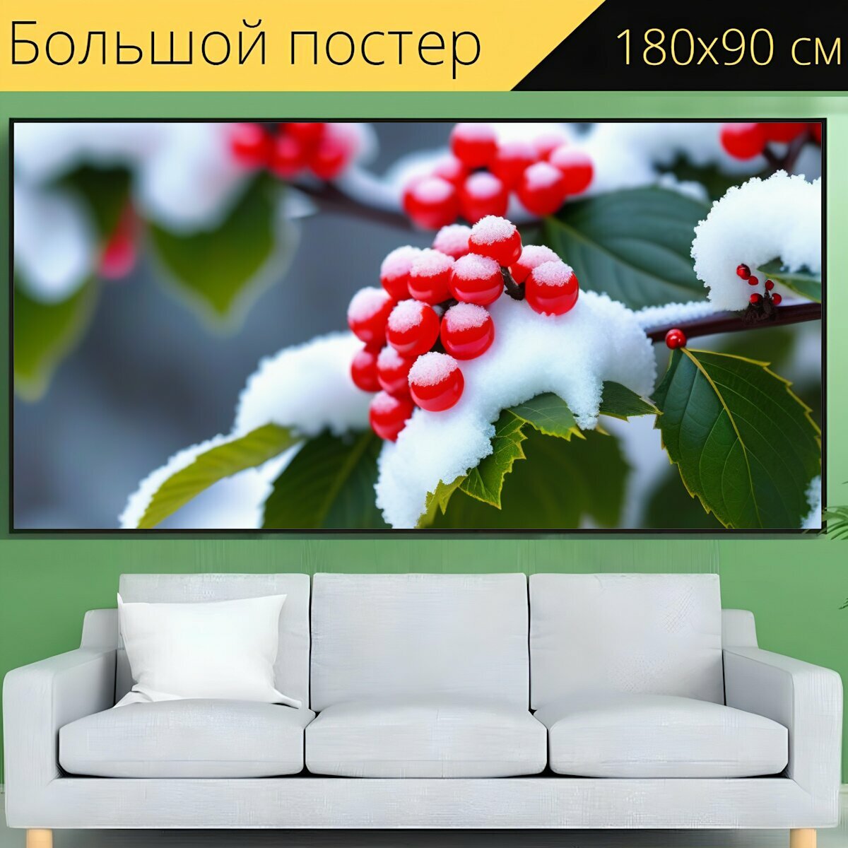Большой постер "Калина, покрытая снегом, с красочными леденцами" 180 x 90 см. для интерьера на стену в тубусе информация: