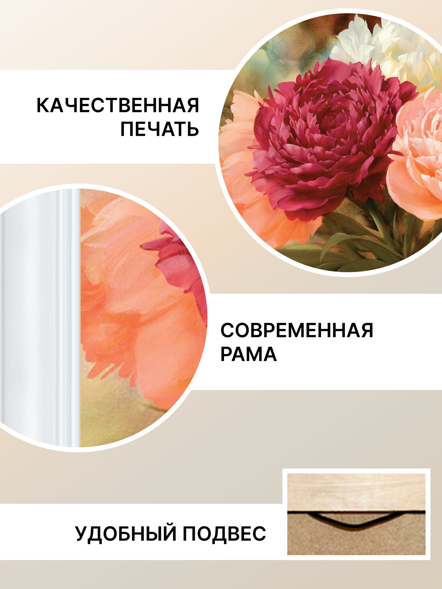 10 цен на Картина на стену белые красные розовые пионы в раме
