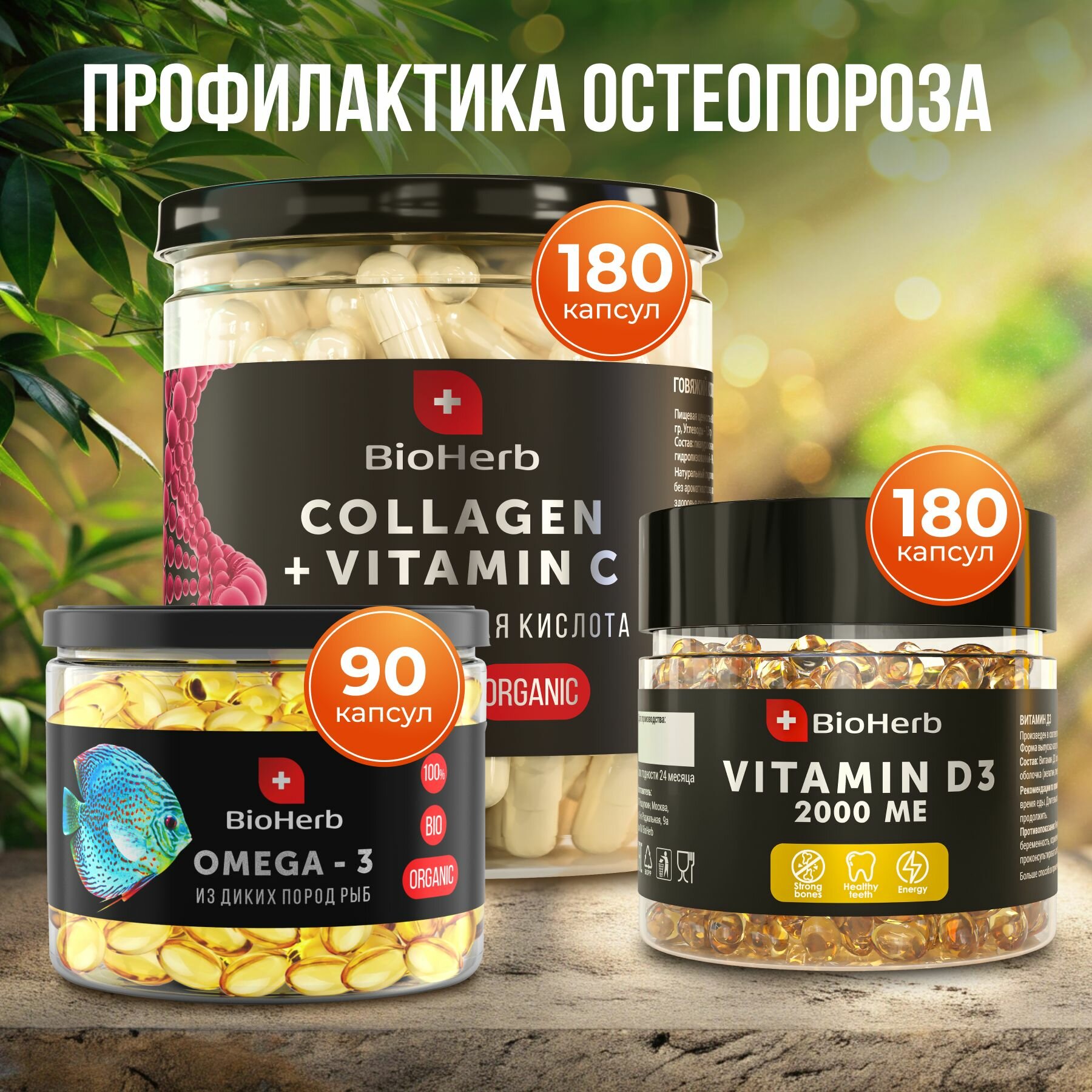 BioHerb Набор Профилактика остеопороза (Коллаген говяжий с Витамином С, Омега-3, Витамин Д3 2000ме) информация:
