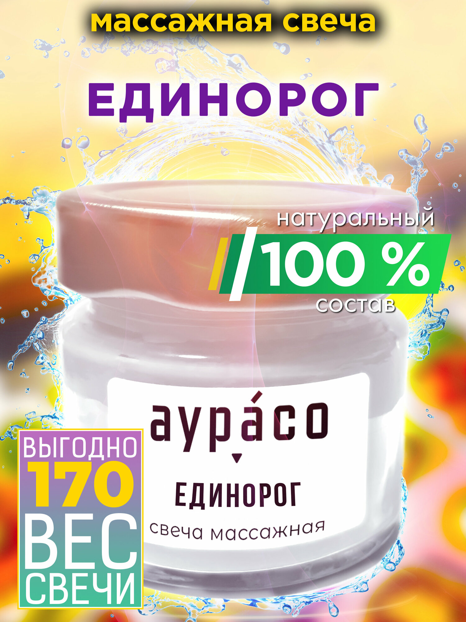 Единорог - натуральное массажное масло, ароматическая массажная свеча Аурасо из 100 % соевого воска, крем-свеча натуральная, 1 шт. информация: