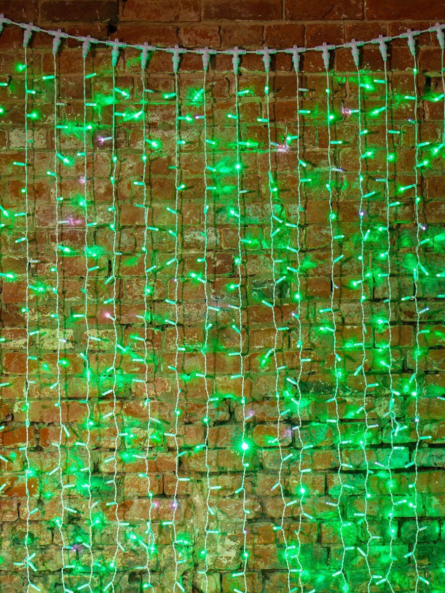 Гирлянда светодиодная Занавес 2х1,5м 360 LED зеленый белый ПВХ IP65 постоянное свечение 230В соединяется NEON-NIGHT шнур в комплекте информация: