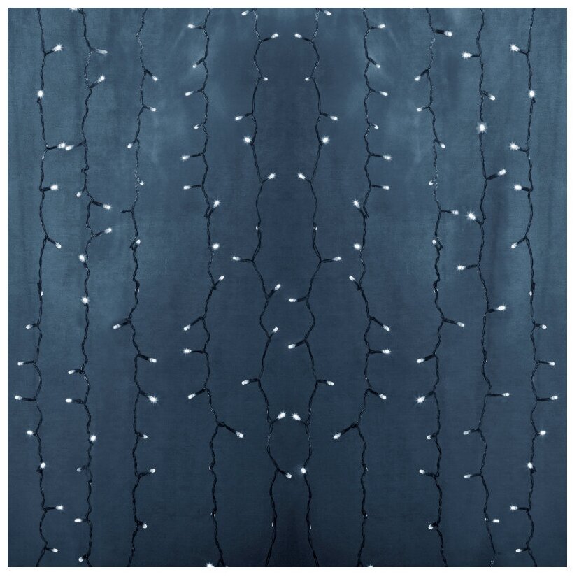 Светодиодная гирлянда Neon-night "Дождь" 2х1.5 м, 360 белых светодиодов, постоянное свечение, черный провод