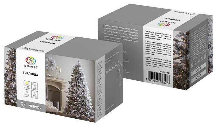 Электрогирлянда новогодняя NEON-NIGHT 303-186, 10 м, 80 ламп, теплый белый