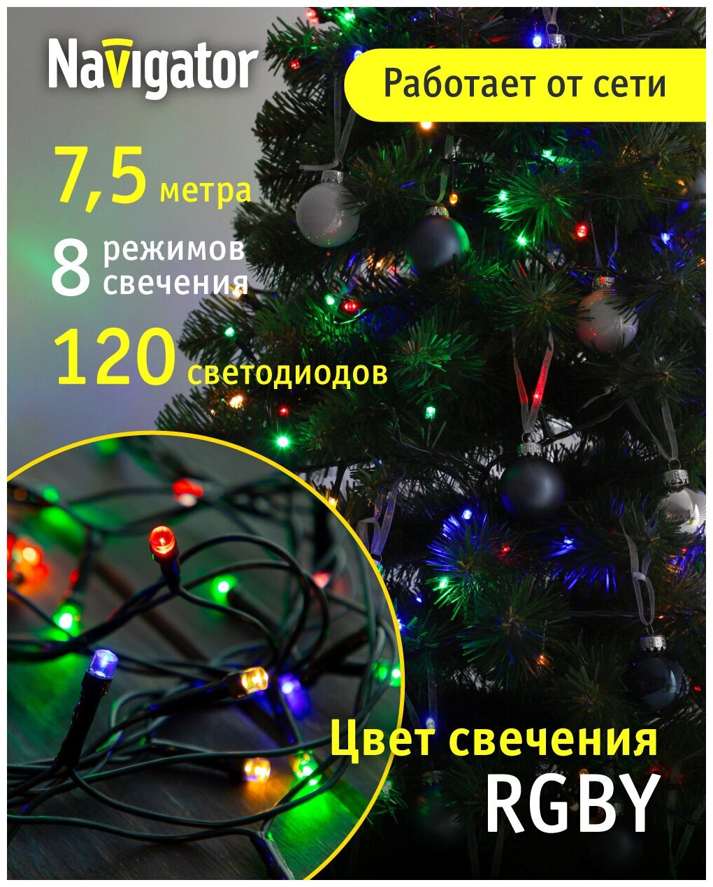 Гирлянда новогодняя светодиодная NGF-S01-120RGBY-5-7.5m-230-C8-G-IP20 Navigator Group 21252 755 ₽