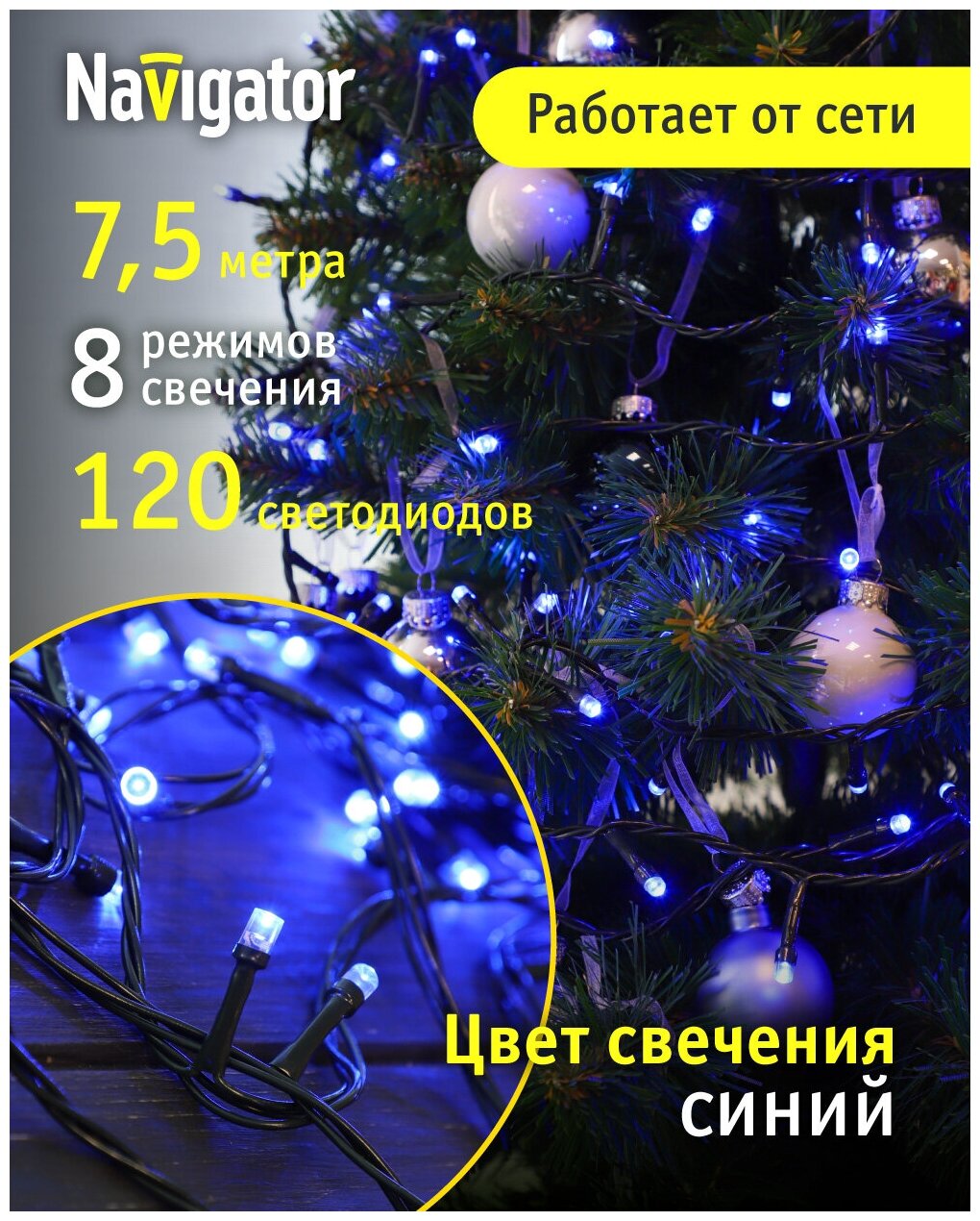 Гирлянда новогодняя светодиодная NGF-S01-120WW-5-7.5m-230-C8-G-IP20 Navigator Group 21253 748 ₽