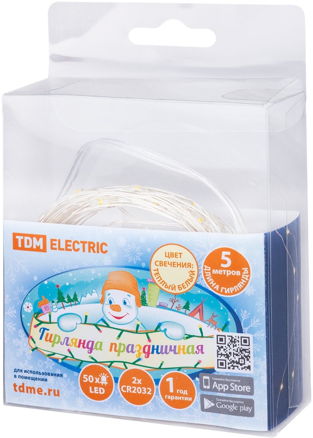 10 цен на Гирлянда светодиодная "Роса50" 50LED, 5м, 3000К, 2хCR2032, TDM