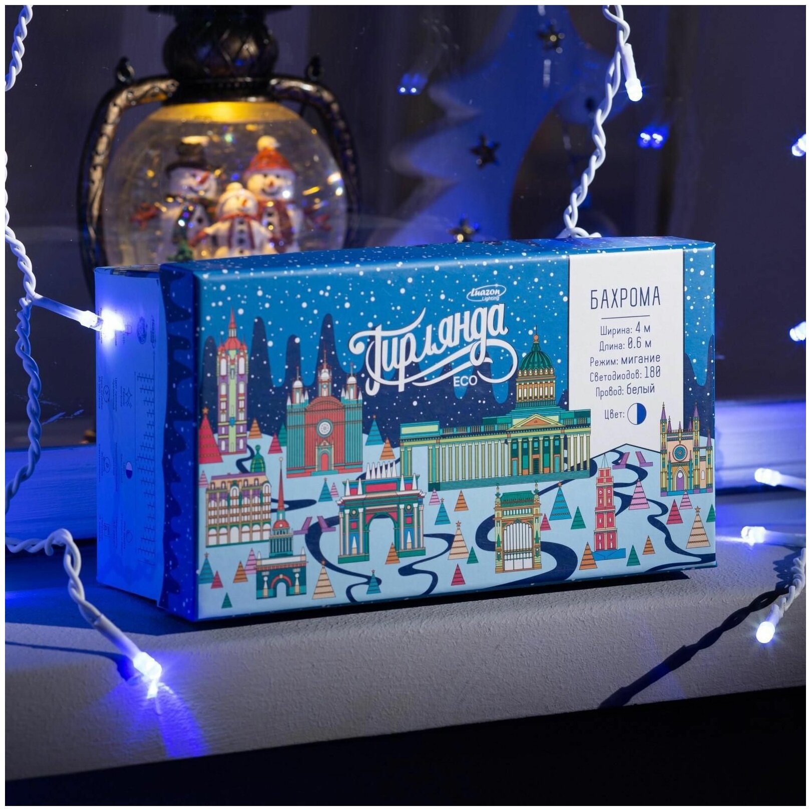 Luazon Lighting Гирлянда «Бахрома» 4 × 0.6 м, IP44, белая нить, 180 LED, свечение бело-синее, мигание, 220 В