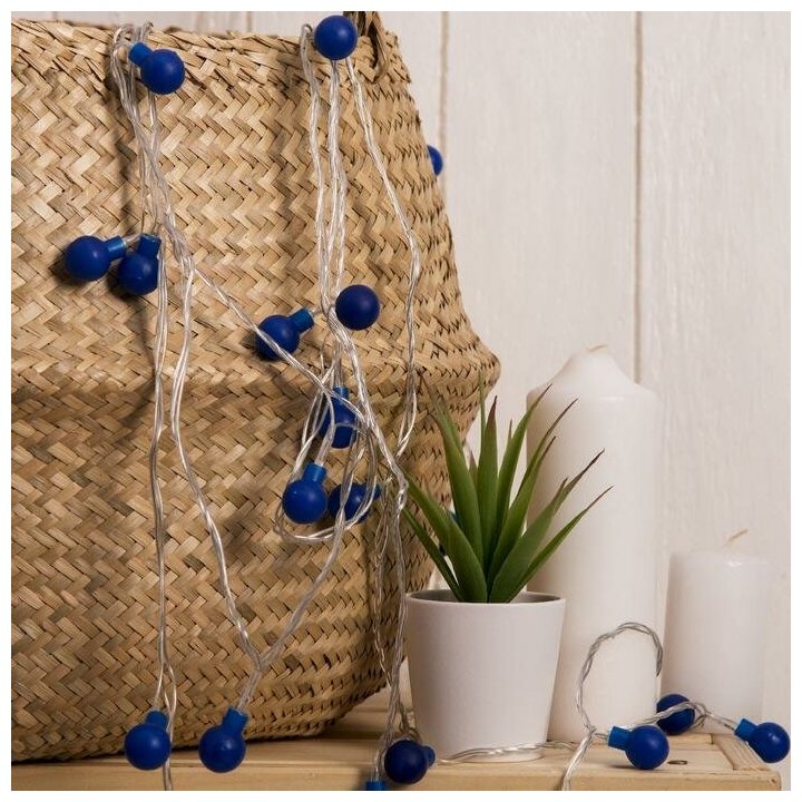 Нить DCR. 5 м, с насад. “Шарики Синие”, IP20, Н.С. LED-30-220V, 8 режимов, синий информация:
