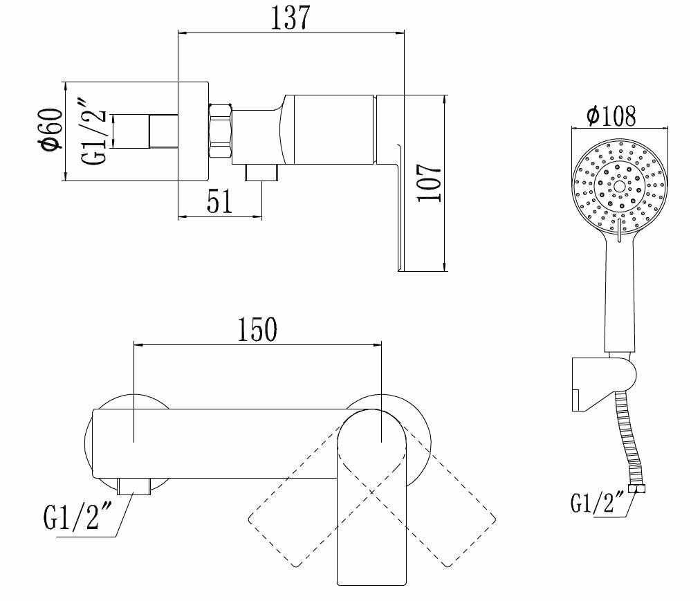Смеситель для душа Savol черный матовый S-601815H информация: