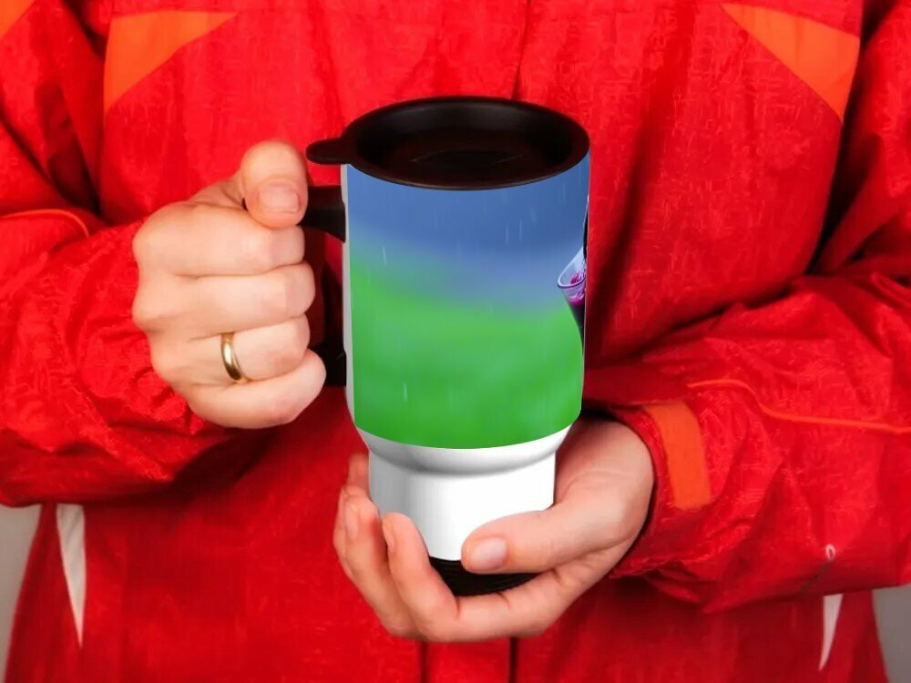10 цен на Тремокружка для авто с принтом "Чашка с сорбе из черной смородины под дождем" 0.5 л.