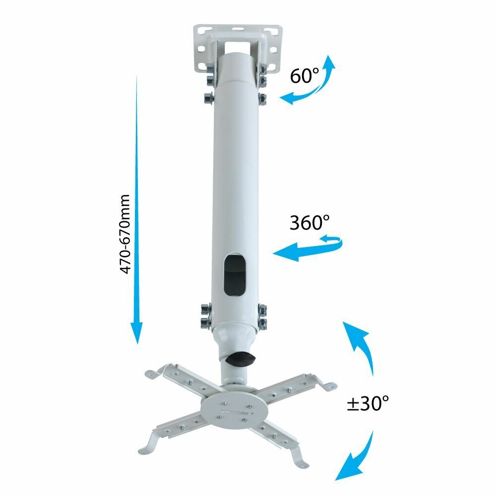 Kromax Крепежи для проекторов PROJECTOR-100 white, Кр. стал. пот. для проек. max 20 кг, 3 ст св., нак. 30 , пов. 360 , от пот. 470-670 мм. 4607161209813