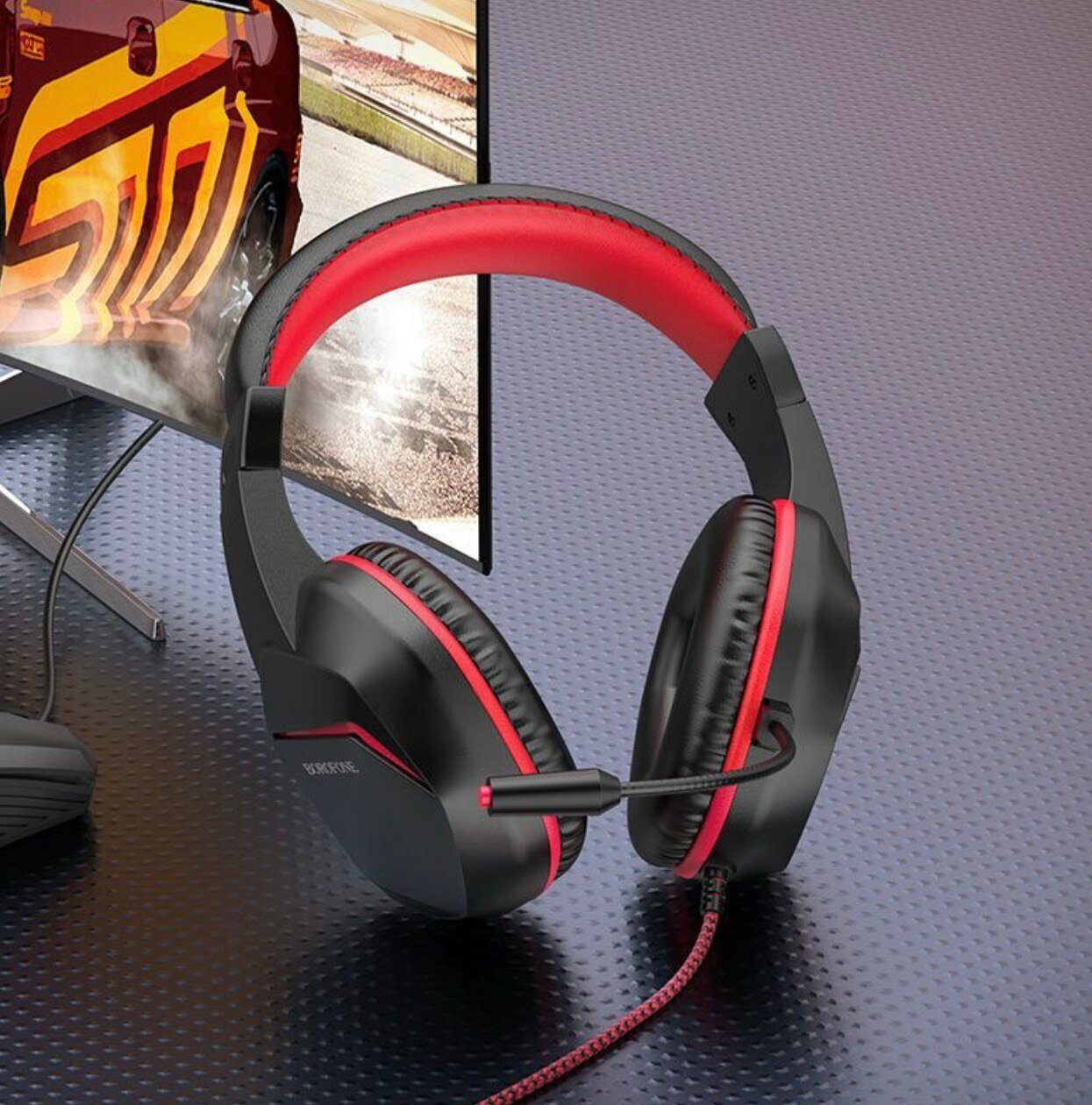 Наушники полноразмерные Borofone BO104 (игровые) (3.5 мм/USB) красный 1 460 ₽