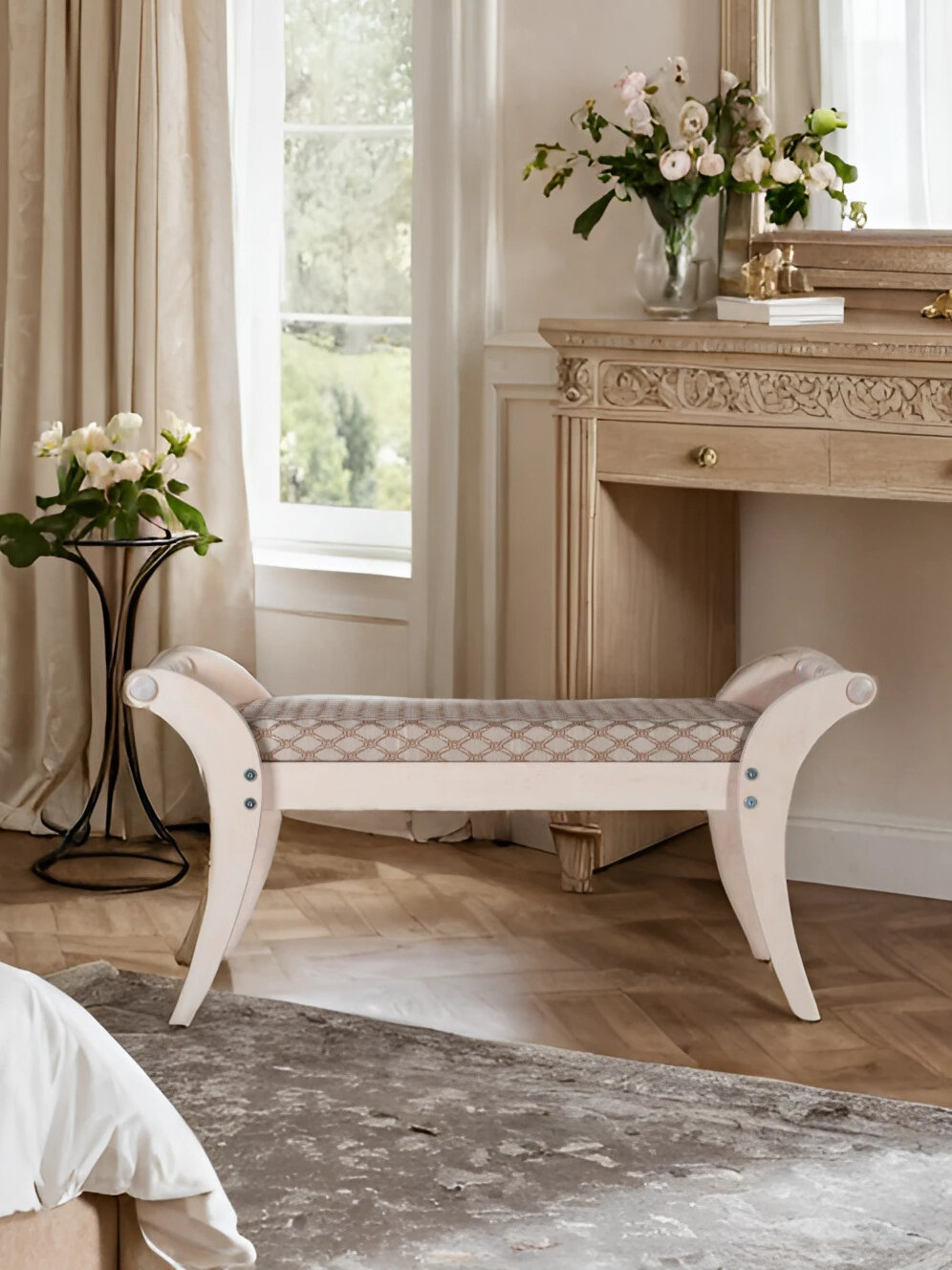 Банкетка Тифани, Цвет обивки: светло-коричневый с рисунком, Цвет корпуса: ясень белый