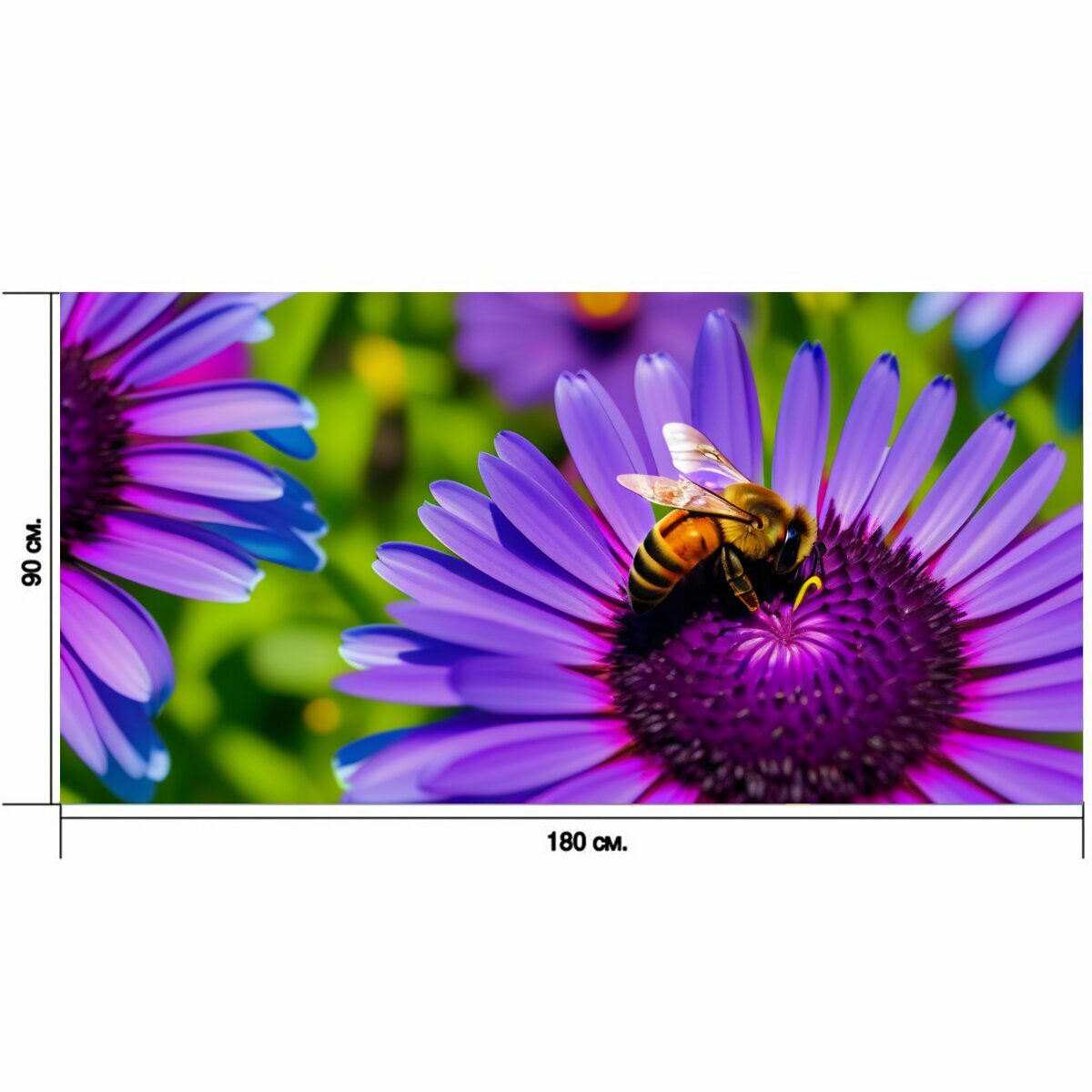 Большой постер "Тюльпаны и пчёлы" 180 x 90 см. для интерьера на стену в тубусе информация: