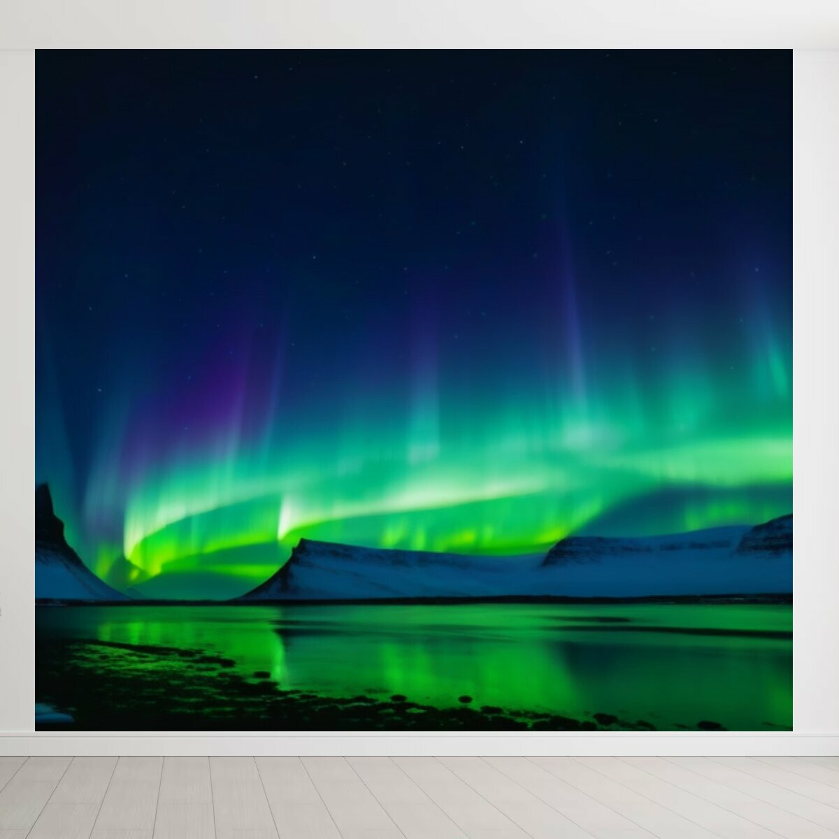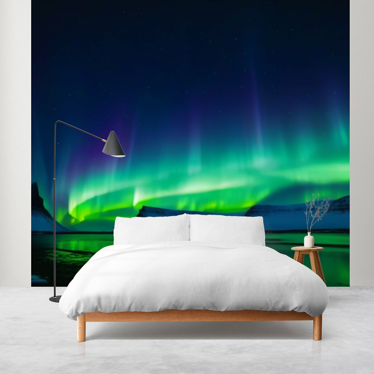 Фотообои "Луна на фоне северного сияния" 300x270 см. флизелиновые на стену информация:
