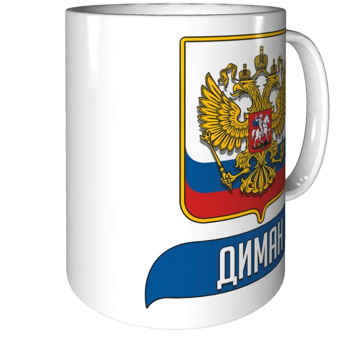 Кружка Диман с Флагом и Гербом России - внутри с праздником информация: