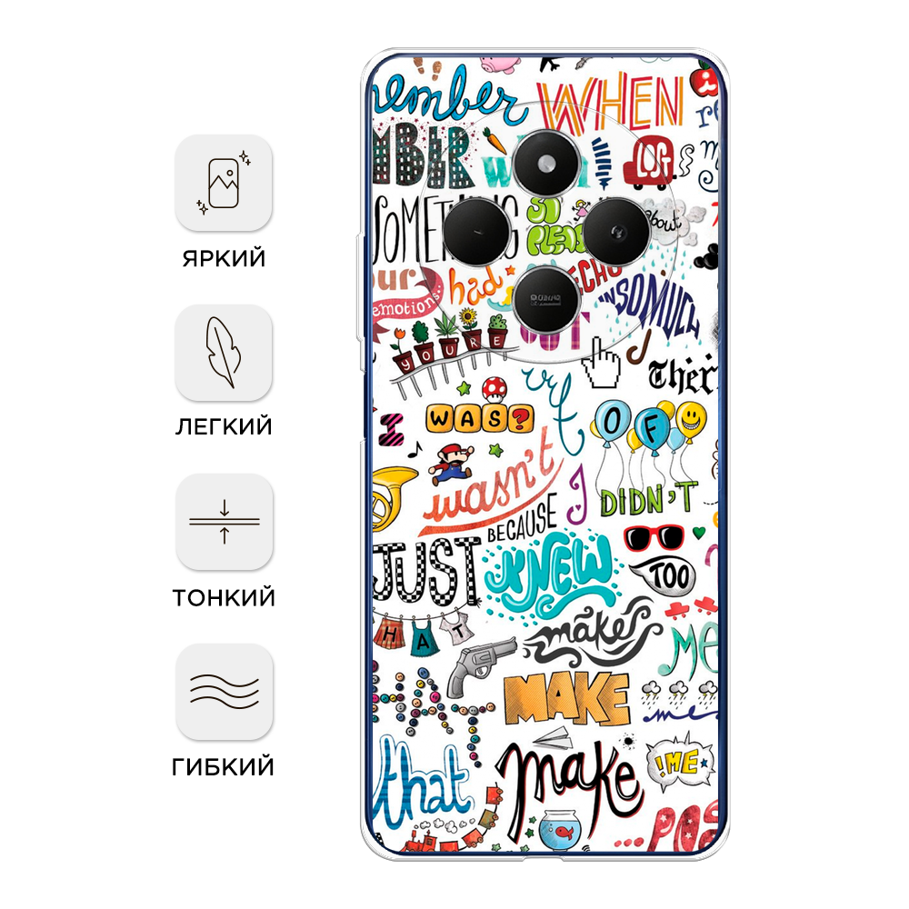 10 цен на Чехол на Xiaomi Redmi 14C/Poco C75 4G / Сяоми Редми 14C/Поко C75 4G с принтом Много надписей